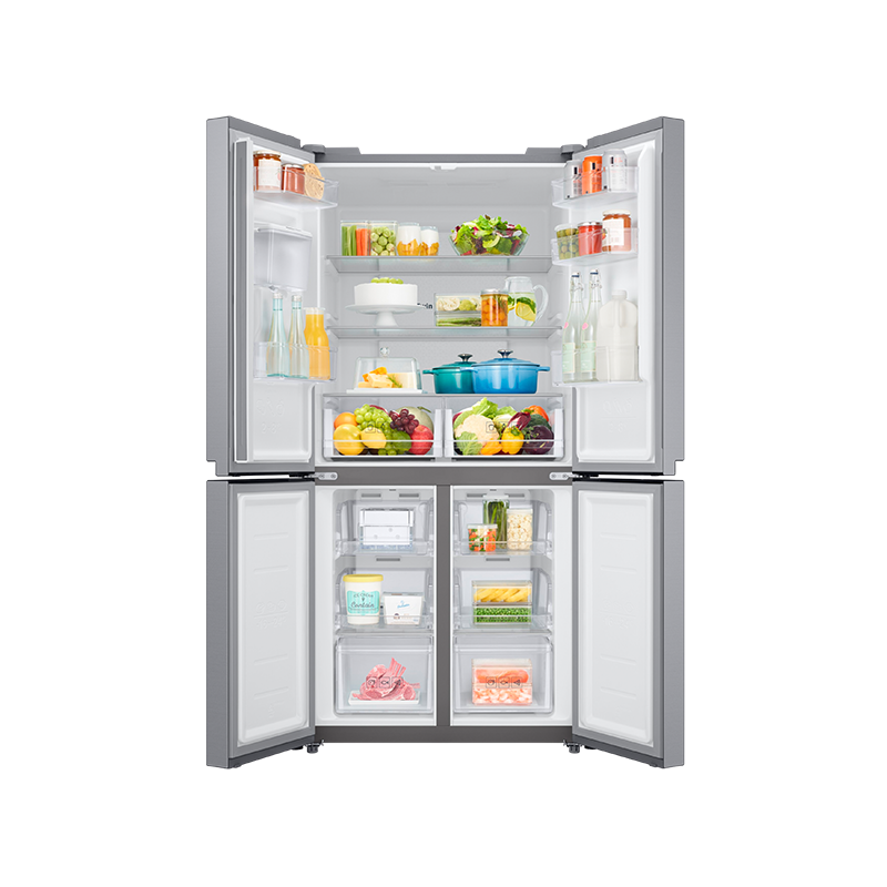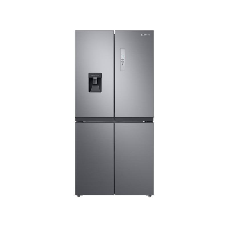 Frigorífico Americano Samsung RF48A401EM9, 488 L (329 L + 159 L), 4 Puertas, No Frost, Con dispensador de agua 4,5 L (sin toma de agua), E (298 Kwh/año) Twin Cooling Plus, Display exterior, Tecnologia Space Max, Sistema Power cool y power freeze, Twist Ice Maker, C (41 dB), 177.5 x 83.3 x 74 (cm), Acero Inoxidable