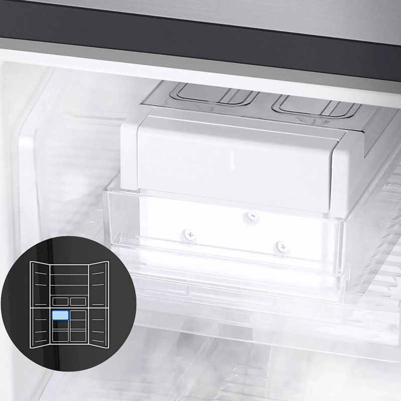 Asegúrate de tener siempre hielo listo en los meses de calor. Con solo girar el dispensador de hielo móvil, tendrás una gran cantidad a tu disposición. Y si tras el cambio de estaciones ya no necesitas hielo, puedes extraer el dispensador para dejar más espacio libre en el congelador.