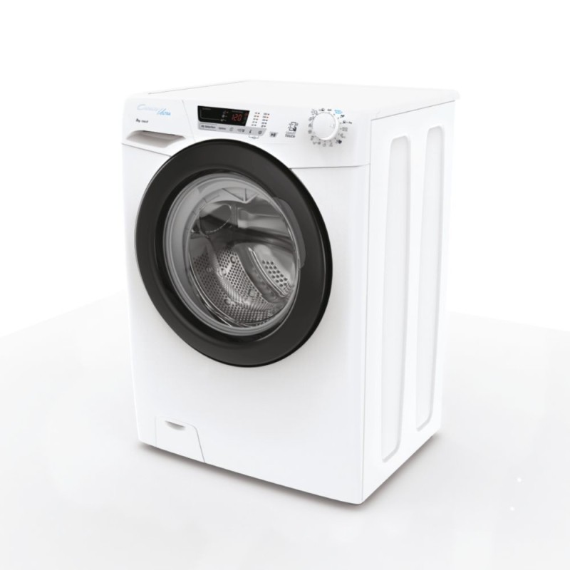 Candy Ultra HCU1282DWB4/1-S. Tipo de carga: Carga frontal. Capacidad nominal: 8 kg, Clase de secado por giro: B, Nivel de ruido (spin): 77 dB, Máxima velocidad de centrifugado: 1200 RPM. Color del producto: Blanco. Ancho: 600 mm, Profundidad: 530 mm, Altura: 850 mm. Clase de eficiencia de energía: B