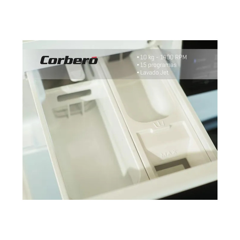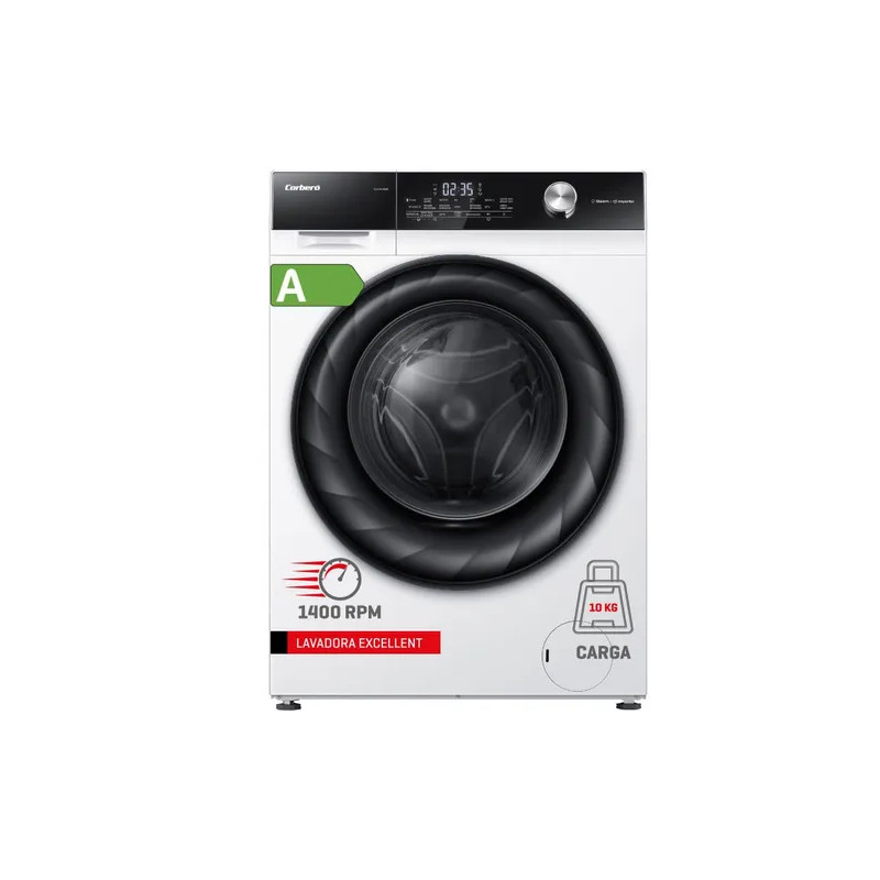 Lavadora Gama Premium Corberó CLT6BL1223, 6Kg, 1200 rpm, Blanca, Eficiencia energética D, Motor Inverter, 16 programas (Vapor, antialergico...), Inicio diferido 3-24 Horas, Lavado Rápido de 15-30 Min. , Puerta XXL