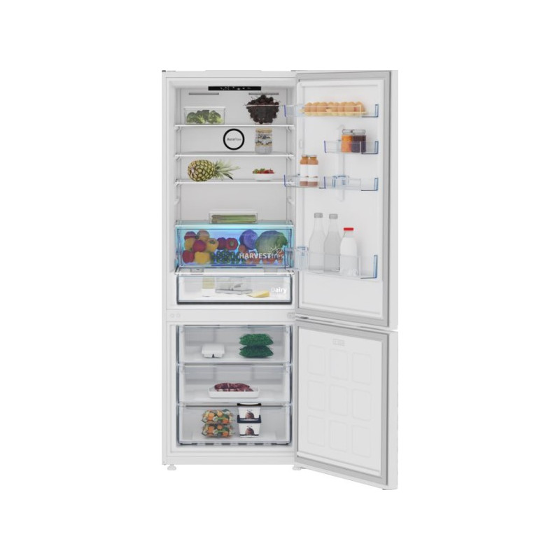 Beko B3RCNE564HW. Capacidad neta total: 490 L. Bisagra para puerta: Derecho, Tipo de visualizador: LED. Clase climática: SN-T, Nivel de ruido: 38 dB. Frigorífico, capacidad neta: 340 L, Antiescarcha (nevera), Sistema multi-flujo de aire (nevera), Luz interior de la nevera. Congelador, capacidad neta: 150 L, Capacidad de congelación: 7,8 kg/24h, Antiescarcha (congelador). Compartimiento de zona fresca. Clase de eficiencia de energía: E, Consumo de energía anual: 295 kWh