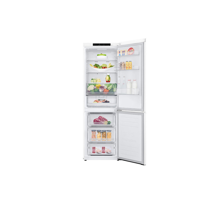 LG GBB61SWGCN1. Capacidad neta total: 341 L. Bisagra para puerta: Derecho. Clase climática: SN-T, Nivel de ruido: 35 dB. Frigorífico, capacidad neta: 234 L, Antiescarcha (nevera), Sistema multi-flujo de aire (nevera), Luz interior de la nevera. Congelador, capacidad neta: 107 L, Capacidad de congelación: 10 kg/24h, Antiescarcha (congelador). Compartimiento de zona fresca. Clase de eficiencia de energía: C, Consumo de energía anual: 171 kWh. Color del producto: Blanco