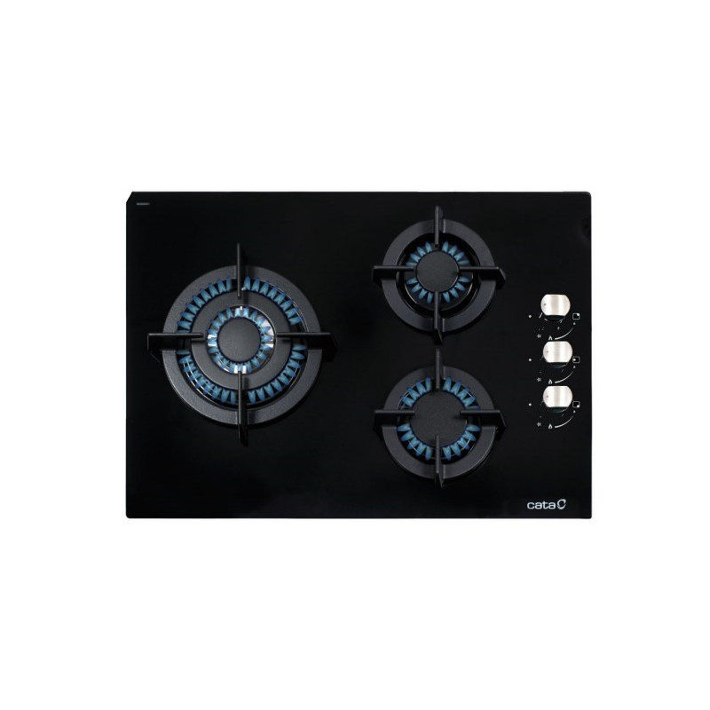 CATA CCI 5003 BK. Color del producto: Negro, Tipo de instalación: Integrado, Anchura de los quemadores: 59 cm. Tipo de control: Giratorio, Control de posición: Arriba a la derecha. Carga conectada (gas): 6250 W, Voltaje de entrada AC: 220 - 240 V, Frecuencia de entrada AC: 50 - 60 Hz. Ancho: 590 mm, Profundidad: 450 mm, Altura: 55 mm