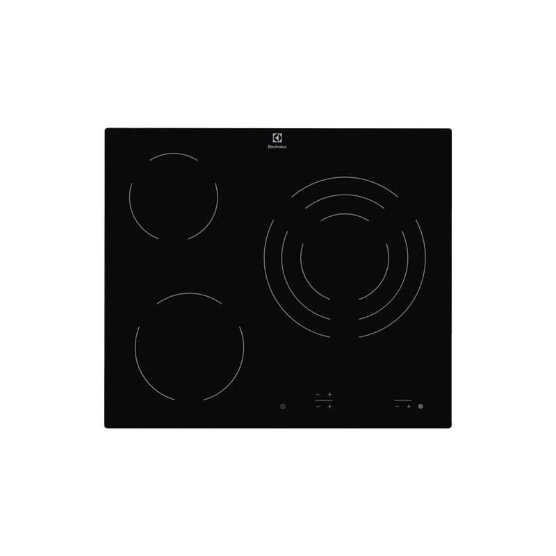 Electrolux EHF6232IOK. Color del producto: Negro, Tipo de instalación: Integrado, Tipo de quemador: Cerámico. Certificación: CE. Tipo de control: Tocar, Control de posición: Front / Top front. Carga conectada (eléctrica): 5700 W, Voltaje de entrada AC: 220 - 240 V, Frecuencia de entrada AC: 50 - 60 Hz. Ancho: 590 mm, Profundidad: 520 mm, Altura: 38 mm