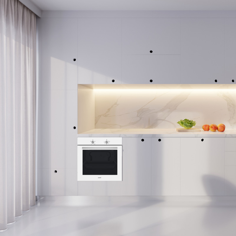 CATA SES 6004 WH. Tamaño del horno: Medio, Tipo de horno: Horno eléctrico, Total capacidad interior, horno (s): 62 L. Tipo de instalación: Integrado, Color del producto: Blanco, Tipo de control: Giratorio. Consumo de energía (convencional): 0,77 kWh, Escala de eficiencia energética: A+++ a D, Voltaje de entrada AC: 220 - 240 V. Ancho de compartimiento de instalación: 56 cm, Profundidad del compartimiento de instalación: 55 cm, Altura del compartimiento de instalación: 59 cm. Clase de eficiencia energética (antigua): A