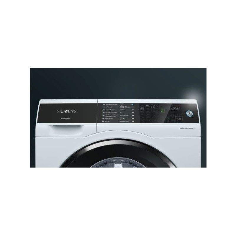 - Funciones: agua extra, prelavado, silencio, menos plancha, 1-3 aclarados adicionales, myFavourite, remojado 10-20-30 min, varioSpeed, ecoPerfect, inicio/pausa+carga