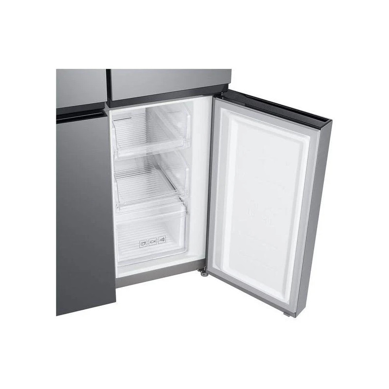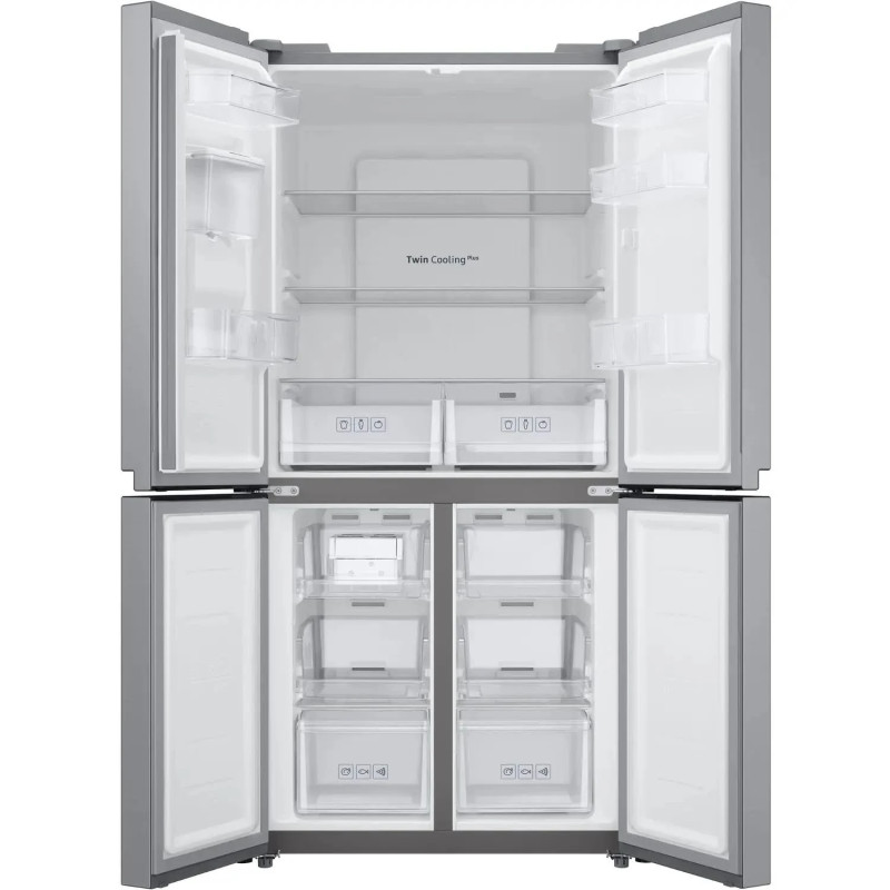 Frigorífico Americano Samsung RF48A401EM9, 488 L (329 L + 159 L), 4 Puertas, No Frost, Con dispensador de agua 4,5 L (sin toma de agua), E (298 Kwh/año) Twin Cooling Plus, Display exterior, Tecnologia Space Max, Sistema Power cool y power freeze, Twist Ice Maker, C (41 dB), 177.5 x 83.3 x 74 (cm), Acero Inoxidable
