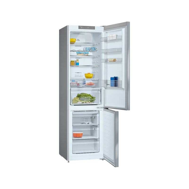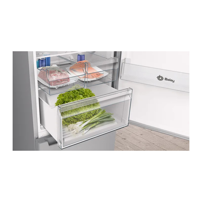 Frigorífico Combi Balay 3KFE763XI, 368 L (279L frigo + 89L congelador), No Frost, 203 x 60 (cm), SN-T, 14 kg/24h, E (238Kwh/anual), Compartimiento de zona fresca, Puertas reversibles, Acero inoxidable