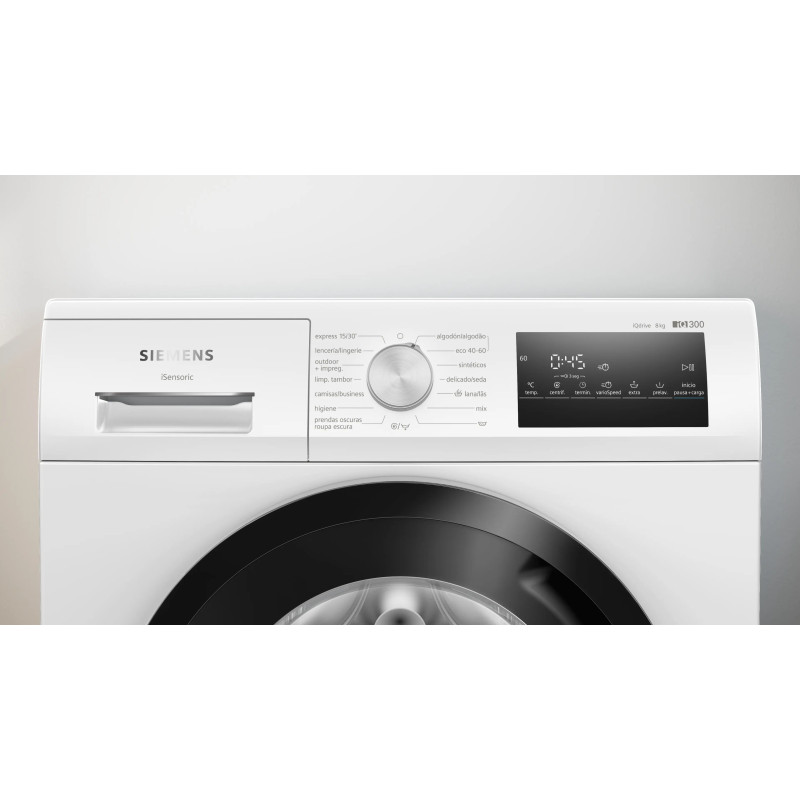 Lavadora de carga frontal Siemens WM12N264ES, 8kg, 1200rpm, MotoriQdrive, C, Programas expres 15"/30", protección múltiple antifugas, Inicio pausa+carga, Blanca